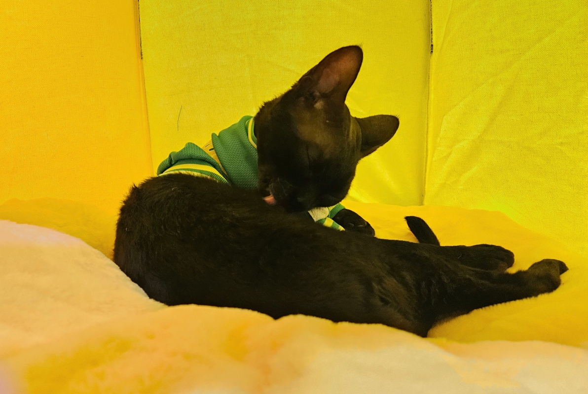 “和你說個秘密,不要告訴其他貓哦!”(香港中通社記者 黃璇攝)