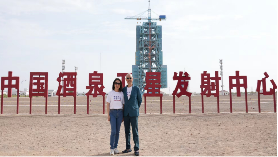 圖片來源:香港科技大學。圖為林奕權議員與葉志雄、葉吳彬彬伉儷在酒泉衛星發射中心合影 在現場觀摩的銀河航太國際業務總監王夏虹高興地說:“非常榮幸為命名這一顆屬於我們香港的衛星牽線葉先生葉太。我和葉太一起,多年來共同為香港慈善事業盡己所能,十分欽佩葉太事事親力親為,真誠細緻。國家的發展已經進入了更高的領域,科技強港強國是其一關鍵,希望可以繼續為香港、為國家盡綿薄之力!”