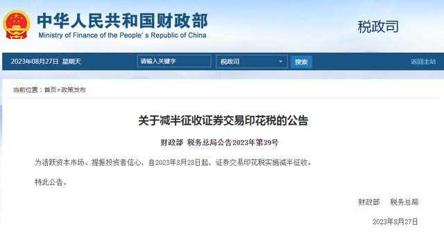 中央政治局會議7月底提出“要活躍資本市場,提振投資者信心”後,上海、深圳及北京3個證券交易所率先宣布,降低證券交易經手費,將於今日生效,中證監早前並要求證券公司降低經紀業務傭金。至於市場最關切的股票印花稅,亦終有好消息。財政部表示,今日起證券交易印花稅實施減半徵收,即由原來的0.1%,降至0.05%,降幅達50%,是早前市傳降幅的上限,亦是2008年以來的首次調降。港交所公佈,調整亦適用於滬股通及深股通。 此外,中證監一次性推出3項舉措,冀活躍資本市場。包括批准上海、深圳及北京3個交易所於下月8日收市後,將投資者融資買入證券時的融資保證金最低比例由100%降低至80%。此外,中證監亦要求進一步規範股份減持行為,要求上市公司若破發(股價跌穿發行價)、破淨(股價低於每資產價值),或最近3年未進行現金分紅、累計現金分紅金額低於最近3年年均淨利潤30%,其控股股東、實際控制人不得通過二級市場減持公司股份。中證監指,目前正抓緊修改《上市公司股東、董監高減持股份的若干規定》。 中證監指,根據近期市場情況,階段性收緊IPO節奏,促進投融資兩端的動態平衡;嚴格要求上市公司募集資金應投向主營業務,嚴限多元化投資,但房地產上市公司再融資則不受破發、破淨和虧損限制。 中證監早前指,減稅有助降低交易成本,以及活躍市場交易等正面作用。前海開源基金首席經濟學家楊德龍預計,本次印花稅調整,一年將減少近千億元交易費用,預計會在下周乃至未來很長一段時間正面推動A股,甚至錄得大幅反彈。 【延伸閱讀】 歷年A股印花稅調整後,市場如何反應?上次調整A股全部漲停 在政治局提出活躍資本市場後,通過降低或者取消印花稅激活市場的呼聲漸高,8月初,證券時報、經濟日報、央廣網等三大官媒共同發聲,為活躍資本市場、提振投資者信心,呼籲降低印花稅。昨日晚間,北京商報發表評論文章稱A股也可以考慮取消印花稅引發較高關注。 1990年印花稅在深圳開征,當時征收標準是由賣出股票的交易者繳納成交金額的6‰;同年的11月,深圳市場對買家也開征了6‰的印花稅。 A股歷史上調整印花稅後上證指數的表現: 1)1991年10月10日,印花稅由6‰下調到3‰,這是我國證券市場史上第一次調整印花稅。調整後大牛市行情啟動,半年後,上證指數從180點飆升到1429點,漲幅接近7倍。 2)1997年5月12日,印花稅由3‰上調到5‰。當天形成大牛市頂峰,此後滬指下跌500點。 3)1998年6月12日,印花稅由5‰下調到4‰,調整後首個交易日,滬指收盤小幅上漲2.65%。 4)2001年11月16日,印花稅由4‰下調到2‰,調整之後,滬指有過一段100多點的行情。 5)2005年1月23日,印花稅再次下調,由2‰下調到1‰。調整後的1月24日,滬指收盤上漲1.73%。隨後,A股引來波瀾壯闊的一波三年的大牛市,上證指數在2007年10月達到歷史高點6124點,至今仍未突破。 6)2007年5月30日,印花稅由1‰上調到3‰,這是1997年以來10年間唯一的一次上調。值得注意的是,上調印花稅的消息在5月29日深夜發佈,這也造成5月30日當日大盤暴跌6.5%。可以說,當時的上證4334點實際上是政策頂,市場已經認為股市過熱了!可是當時的市場非常瘋狂,直到10月份中旬6124點才結束牛市。 7)2008年4月24日,印花稅從3‰調整為1‰,調整後,滬指收盤大漲9.29%,大盤接近漲停。可以說,3000點是當時的第一次官方護盤,第一次政策底。 8)2008年9月19日,上證跌到1800點附近,第二次政策底出現,官方第二次護盤,證券交易印花稅由雙邊征收改為單邊征收,稅率保持1‰。當天滬指創下史上第三大漲幅,收盤時上漲9.45%,兩市個股全部漲停。大約1個月後,上證最低點1664點出現,市場底出現。大盤止跌回升,隨著4萬億刺激政策的推出,到2009年8月,上證上漲到3400點上方,大盤翻倍。(完) 【編輯:紀東】