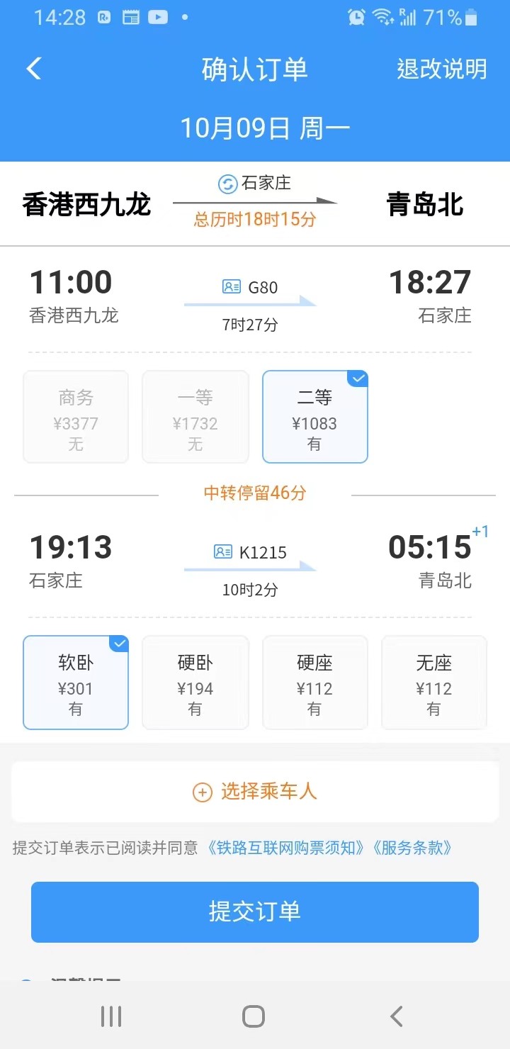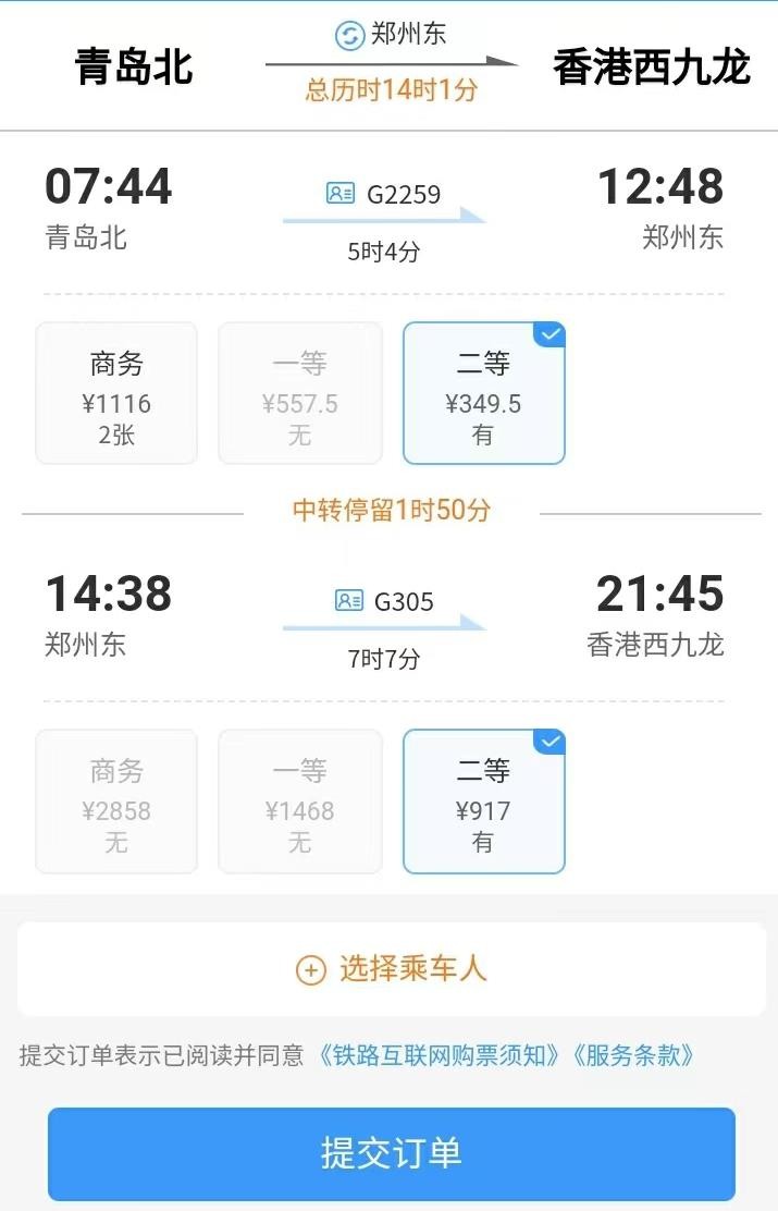 回程:一早從青島北出發,高鐵在鄭州站下車,不用出站,通過中轉通道回到候車地,吃完中午飯,坐高鐵回到香港。