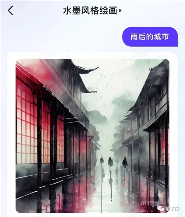 繁瑣的Excel公式,到文心一言這裡也就變成幾個關鍵字的事 做PPT大綱也是不在話下。 不僅公式可以一鍵複製,就連為什麼公式會長這樣、用到了哪些函數,都會解析得一清二楚。 再複雜一點的情況,例如解析代碼,看不懂就直接一個“丟進去”的動作即可。 就連咨詢算法、市場規模估算這種高專業度的事兒,到文心一言這裡也是能够輕鬆hold住。 在AI繪畫方面,熱度最高的玩法就是“水墨風格繪畫”了。我們不妨以它為例,看看效果如何。投喂一句“雨後的城市”,成果是這樣的: