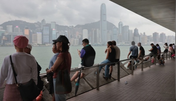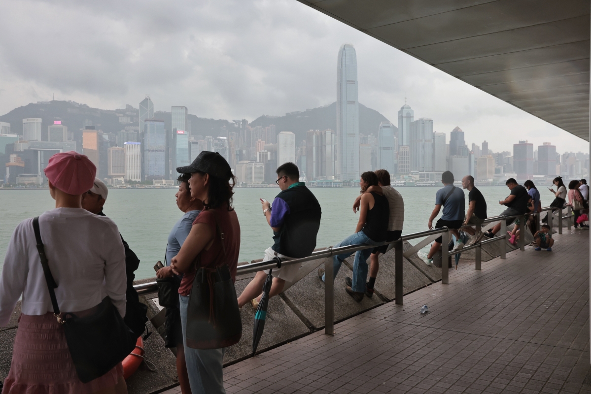香港中通社記者 謝光磊 攝 不少市民無畏強風,來到風勢頗強的維港海邊“追風”。