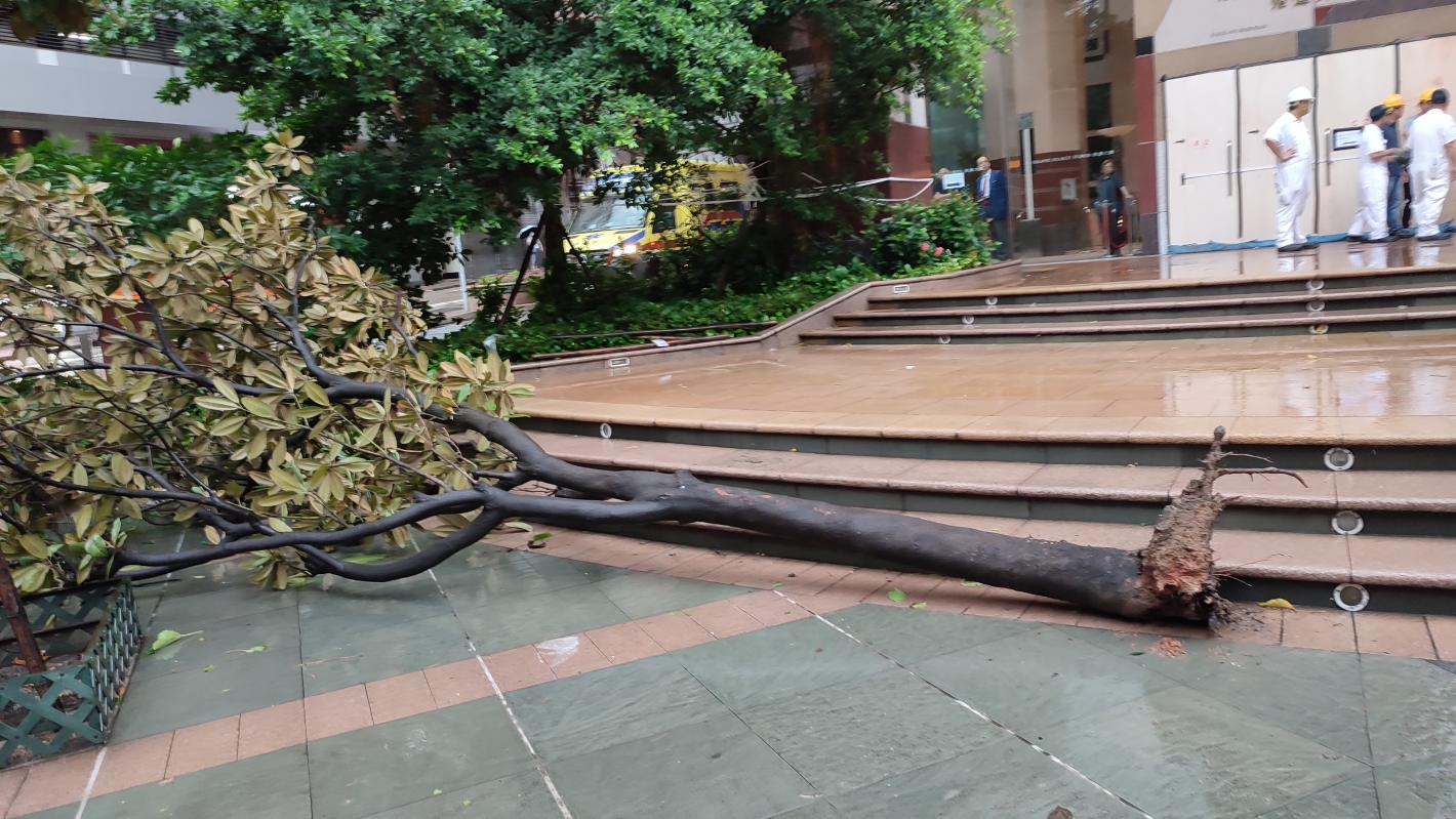 香港中通社記者 謝光磊 攝 狂風將北角一顆樹連根拔起。