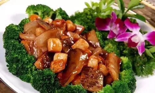 棋子燒餅。圖源:河北新聞網 >>【海參扒肘子】海參扒肘子是一道色、香、味俱佳的傳統名菜。屬魯菜系,後傳入唐山。此菜煮熟後,手肘鮮紅柔軟,香而不膩,海參烏黑亮亮,軟糯可口,鮮美可口。