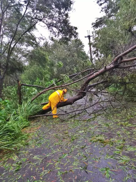 颱風海葵登陸台灣造成8萬戶停電,圖為台電人員在搶修供電線路。圖源:台灣電力公司 截至昨日(3日)下午五時,全台灣至少八萬戶停電,大部分在台東和花蓮。經台電人員搶修,還有1萬3千多戶停電中,主要集中在美濃、內門、大社、燕巢、田寮等行政區。台電表示,電力的搶修需以捷運、火車、自來水及通話通信等公用設施為優先,請停電戶稍為忍耐,台電目標是在今天(4日)完成復電。