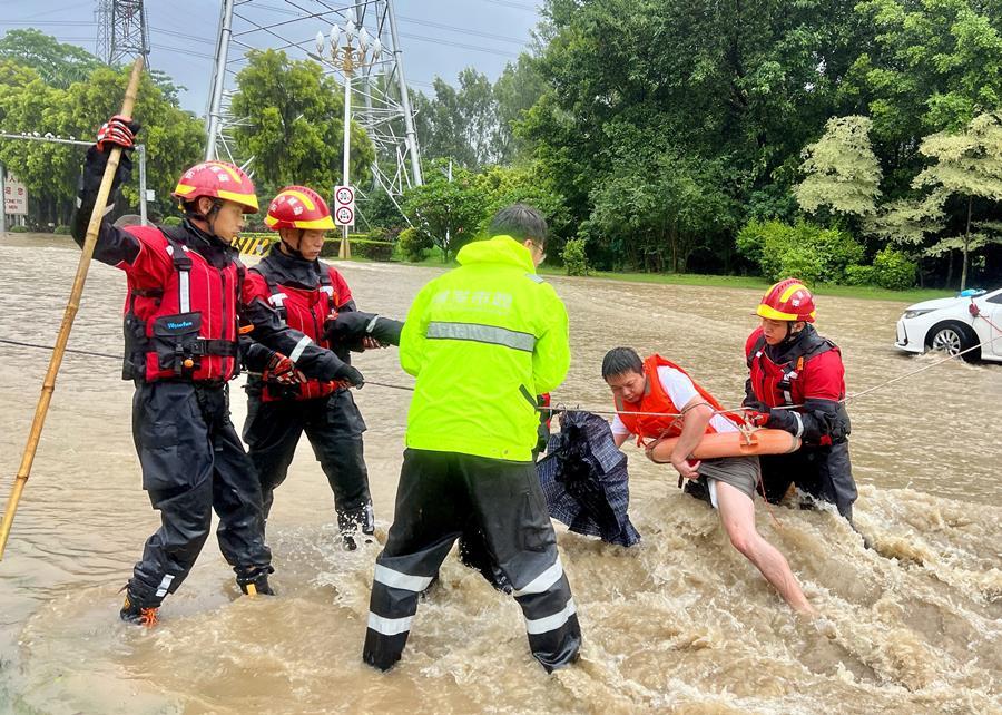 9月5日,受颱風“海葵”帶來的強降雨影響,福建漳州和寧德部分低窪地段出現嚴重積水。福建消防第一時間組織救援力量緊急轉移受困人員。圖為漳州消防救援人員轉移受困人員。 香港中通社圖片 持續強降雨致福州城區出現80多處積水,3.6萬人緊急轉移 據央視新聞客戶端9月6日消息,記者從福州市氣象局了解到,颱風登陸後,受“海葵”颱風後部雲團影響,福州持續性強降雨突破歷史極值。根據統計,5日21時至6日5時累計雨量,全市共有8個縣(市、區)50個鄉鎮降雨量超過100毫米,其中7個縣(市、區)925個鄉鎮降雨量超過250毫米,最大為倉山區蓋山鎮439.7毫米。與2005年“龍王”颱風對比:5日福州烏山國家氣象站3小時雨量達203.1毫米,6小時雨量達240.4毫米,突破了福州本站3小時和6小時最大雨量紀錄(原記錄為2005年10月2日龍王颱風,分別為185.0毫米和192.7毫米)。本次降水過程短歷時、強降水的極端性更加突顯,遠強於“杜蘇芮”颱風。 此外,記者從福州市防汛抗旱指揮部了解到,福州全市420座水庫有49座超過汛限水位,梅溪、大樟溪、敖江出現超警。因強降雨持續時間長、強度大、內河河水頂托、河道滿溢等原因,城區共有80余處積水(包含下穿通道12處),路面最大淹沒水深為1.4米,道路下穿最大淹沒深度接近4米。截至目前,受災鄉鎮147個,總體受災人員51272人,其中緊急轉移人口36026人。城區嚴重受淹小區63個,住宅小區地下停車場(庫)進水44個,受淹城中村16個;受淹農田4194.65公頃,受損公路(橋梁)170處,損壞房屋919間,倒塌房屋67間,受損電力線路125條,受損通信線路85.4千米、通信基站21個,直接經濟損失約為5.521億元。 福州地鐵、公交、旅客列車停運 @福州地鐵 9月6日6:06發佈地鐵運營公告稱,受第11號颱風“海葵”影響,地鐵車站周邊多處積水,為保障廣大乘客的出行安全,自9月6日6:30時起,福州地鐵全線網車站暫停運營服務。 請乘客朋友們留意福州地鐵微信公眾號、微博等官方公告。如條件具備,地鐵將盡快恢復運營。