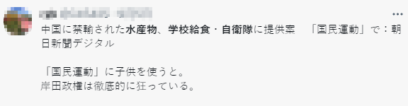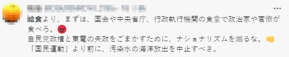 有日本網友表示,這些滯銷水產應該提供給日本國會、行政機構的食堂,讓日本政治家和官僚吃,而不是學校。