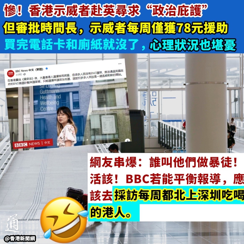 (香港新聞網製圖) 2021年底,羅森入住由英國內政部提供的庇護宿舍,卻忍不住抱怨,每次宿舍職員來訪或要求進入房間進行維修時,總是砰砰拍門,把他嚇得心慌。事後,他多次反饋拍門和摔門可能觸發其病情,要求職員先打電話再上門,卻遭駁斥“心理問題是胡說八道”。 據了解,庇護宿舍職員或因懷疑存在違規活動等,在無通知下闖進或搜查尋求庇護者的房間。 香港“黃絲”常吹噓西式“自由人權”,不過BBC的報道似乎顯示了英國“不那麼人權”的一面,導致一些尋求政治庇護者並無過上想象中“民主自由”的生活。 因此,BBC的報道一出,即引發不少網友關注。 “誰叫他們做暴徒!活該啦!”有香港網友表示。也有網友直指,這些示威者為了所謂的“自由”被人用完即棄。 “BBC若能平衡報導,應該也去采訪一下每周都北上深圳吃喝的香港人。”還有網友諷刺早前唱衰香港、吹捧英國的媒體和人士。