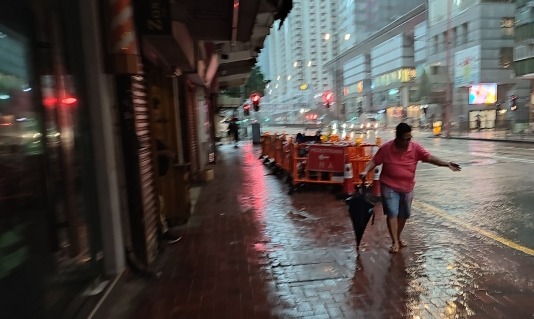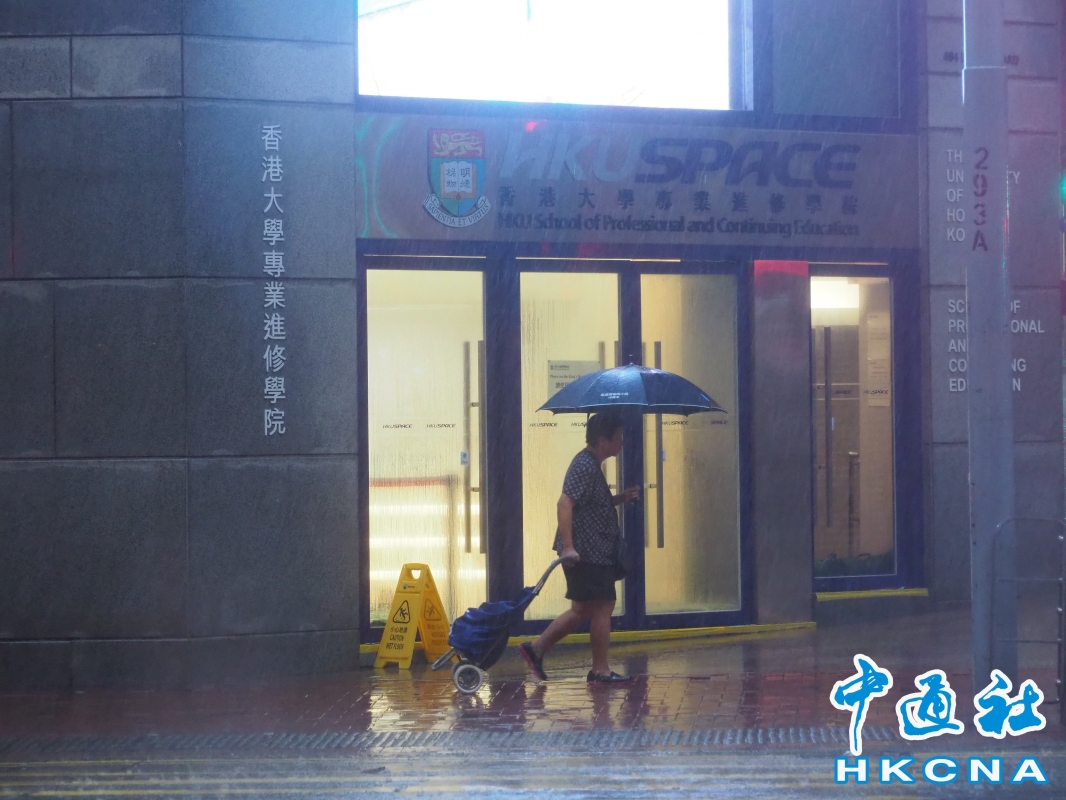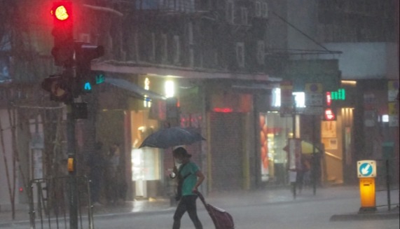 黑雨仍然生效。香港中通社記者 謝光磊 攝