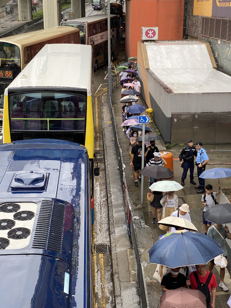 (圖源:政府新聞處) 往來筲箕灣及石澳的第9號及X9號路線,以及往返西灣河及赤柱的第14號路線,因封路仍然暫停。因應蓮塘/香園圍口岸仍然暫停旅客清關服務,B7、B8及B9巴士線暫停服務。 另外,途經淺水灣道及司徒拔道的第6/6A/6X號、15號及260號路線,因應路況需要縮短路程。至於較早前受暴雨影響的港內及離島渡輪服務已恢復正常。 城巴今日由頭班車起,恢復提供大部分日間巴士服務,但由於筲箕灣耀東邨大面積山泥傾瀉,清理工作預計要以星期計算才能完成,7條途經耀興道的巴士路線要改道,城巴將視乎需求,加強接駁耀東邨的2A號線班次。 城巴表示,筲箕灣耀東、柴灣環翠道、石澳、赤柱、大潭、山頂、大坑道、摩星嶺、西貢等一帶路面狀況惡劣,預計這些路段的巴士服務恢復時間會較長,途經的路線今日仍須改道、縮短行程,或暫停服務,乘客可透過城巴流動應用程式及網頁查詢。 較早時受影響的落馬洲—皇崗過境穿梭巴士服務以及短途跨境巴士服務,包括油尖線、灣仔線、旺角線、荃灣線及觀塘線,亦已回復正常。 港鐵早前表示,今日觀塘綫恢復提供全綫列車服務,黃大仙站重新開放,但至早上10時前,因有架空電纜故障,需疏散所有乘客,黃大仙站再次關閉。 港鐵指,由於觀塘綫黃大仙站路段架空電纜故障,石硤尾至彩虹站的列車服務暫停。經初步檢查,發現是黃大仙站往調景嶺方向的月台,隧道頂有輕微滴水,滴在架空電纜絕緣體上,因此影響供電。初步相信與早前暴雨水浸有關,工程人員其後進行修復工作,並檢查黃大仙站附近路段隧道頂其他位置有否滴水。