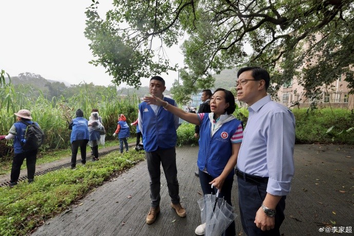 (圖源:李家超微博) 李家超在社交平台發文稱,今早到粉嶺了解公務員工作情況,為他們“打氣”。在馬尾下村視察期間,人員合力清理村內受塌樹阻塞的通道。其後他到聯和墟臨時庇護中心,了解中心向市民提供的協助,同時探訪及安慰受暴雨影響的居民,他們都是因住所被水浸需暫時撤離。 李家超強調,各部門正馬不停蹄進行善後工作,公務員同事會為居民提供一切所需協助,務求讓市民盡快恢復正常生活。 麥美娟在視察粉嶺聯和墟臨時庇護中心後表示,聯和墟的庇護中心高峰時有220多人入住,有人衣衫盡濕,有兒童沒鞋穿。政府人員昨日已安排衣服和拖鞋等物資分發災民,並協助他們登記包括政府及慈善組織提供的緊急援助基金,讓他們添置災後家具等。 麥美娟強調,特定援助金沒有名額限制,而各部門的援助基金有不同申請程序,會加派人手,彈性處理申請,及早援助災民。 早前,民政事務總署為有需要人士開放共15個臨時庇護中心,至少有335人入住。