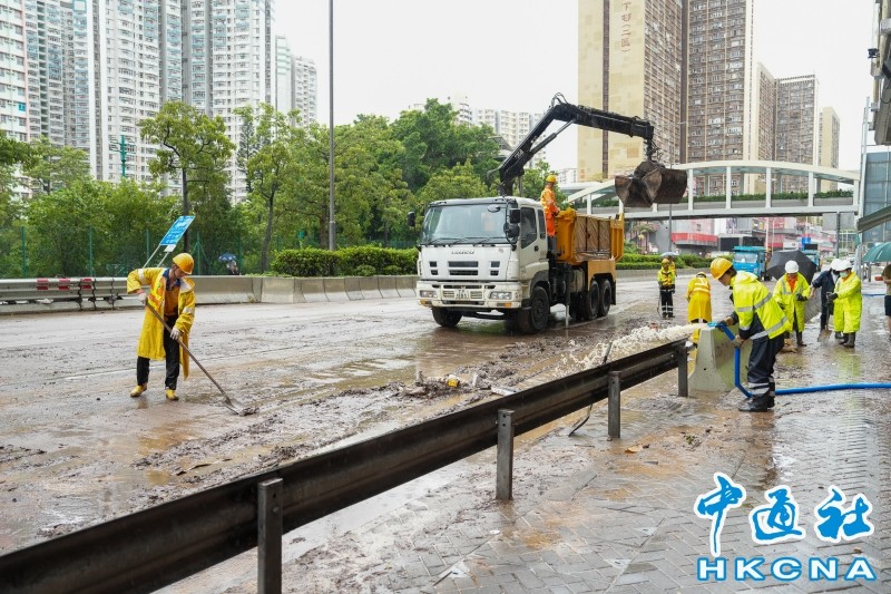 香港中通社圖片 食物供應方面,謝展寰指出,內地活豬進口暫停一天後已恢復正常,因應文錦渡口岸暫停運作,局方已經安排鮮活食品車輛由落馬洲口岸進行清關進口,食物供港沒有受影響。 截至當天下午4時,教育局接獲117所學校損毀報告,有10間學校因校園受到破壞,要進一步善後清理,暫時不能在提供面授課程,須上網課。 發展局局長甯漢豪表示,因暴雨造成60多宗內澇事故已清理完畢。截至當天中午,收到75宗山泥傾瀉報告,其中54宗已完成檢視,並採取跟進工程。 甯漢豪強調,極端天氣後,山坡仍存在風險,在政府部門主動巡查前,市民要遠離山坡,盡量不要在樹下停留。氣候變化是全球問題,香港需要積極面對和超前部署。明年下旬,渠務署會完成改進在極端天氣下的渠務系統。 【編輯:李泺】