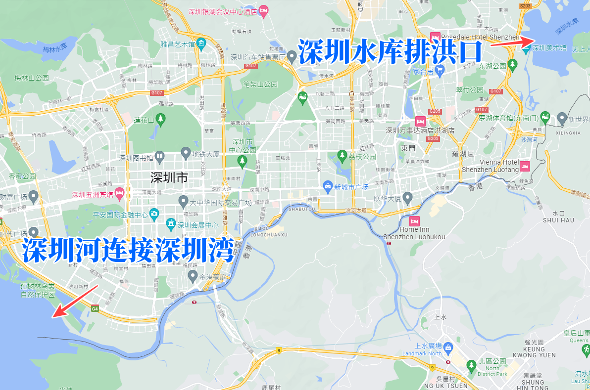 深圳河水位在排洪期間並無越過堤岸。大公報圖片 署理渠務署署長徐仕基亦在當天記者會中解釋,由於深圳河水位並無因為排洪而氾濫,因此香港地區水浸與深圳排洪無關。他指出,新界北包括沙頭角等出現水浸,主要是基於特大暴雨,超越有關位置的排洪能力,雨水未能及時排走。亦有部分地點有泥沙、樹葉、樹枝或雜物,隨著雨水倒流入排水渠管,造成阻塞。 除此之外,深圳市應急管理局防災減災處處長王常效8日亦表示,深圳水庫因暴雨致水位上漲比較快,已經超過警戒水位,排洪主要是沿深圳河,排向深圳灣,即排向大海。受影響的主要地區分別是羅湖區、福田區,沿深圳河比較低窪一帶的地方。