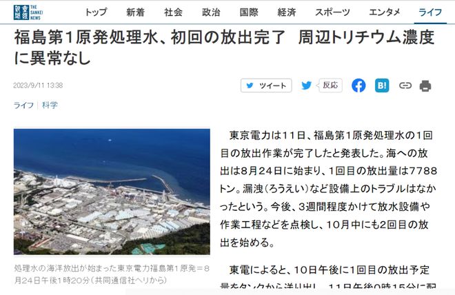 日本福島核污水首輪排海結束,當地現狀如何?香港新聞網9月13日電 當地時間9月11日正午,日本福島第一核電站核污染水首輪排海作業結束,總計向太平洋排出7788噸核污水。根據東京電力公司的計劃,接下來將進行設備檢查,最早將於9月底開始第二輪排海,今年將分4次排放3.12萬噸核污水。