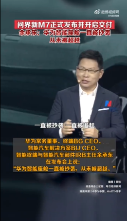 華為又重磅發佈 “一直被抄襲 從未被超越”香港新聞網9月13日電 這幾天,關於華為的高科技一直是大家熱議的焦點。9月12日,問界新M7上市發佈會在上海舉行。此次發佈會無關華為手機,而是關於HUAWEI ADS 2.0高階智能駕駛系統。 發佈會上,台下觀眾席時不時傳來“遙遙領先”的呼聲,華為常務董事余承東也笑著進行回應。