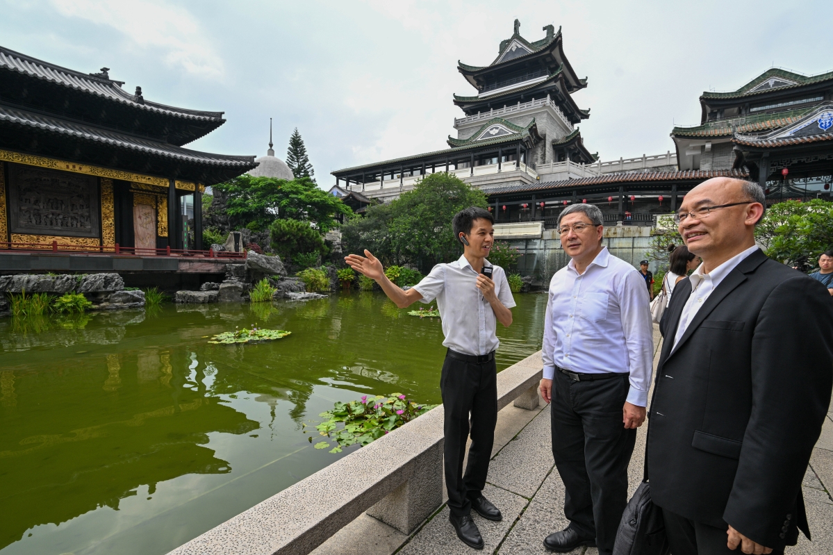 卓永興(中)在廣州參觀廣東省粵劇藝術博物館,聽取博物館工作人員介紹粵劇的源流及發展。 傍晚,卓永興轉抵澳門,出席首屆粵港澳大灣區發展工商大會歡迎晚宴。他指出,去年二十大報告強調,要推進大灣區建設,支持香港、澳門更好融入國家發展大局。香港特區政府重視大灣區建設,致力深化與廣東省及大灣區不同城市的合作關係。他期望這次工商大會,作為粵港澳三地工商交流的新平台,匯聚粵港澳以至世界各地的商界領袖和專業人士,有助開拓新商機,謀取新發展。 卓永興結束訪問廣州和澳門,晚上返抵香港。(完) 【編輯:孟宜君】