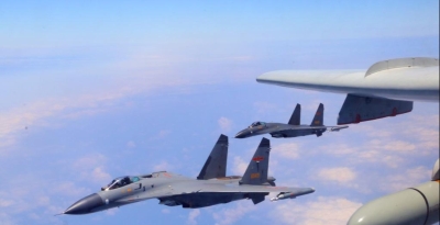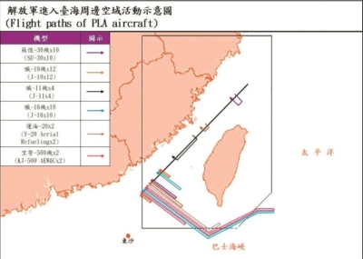 解放軍軍機在繞台巡視。新華社資料圖 據台灣“中央社”14日報道,台“國防部”公佈數據稱,截至當天早上6時,陸續偵獲解放軍蘇-30、殲-10、BZK-005、殲-16、空警-500、運油-20以及運-9等各型戰機創紀錄的68架次,其中40架次逾越所謂的“海峽中線”及其延伸線進入西南部及東南空域。 而此前,在12日,台“國防部”公佈,多達20艘解放軍軍艦在台海活動,也創下新紀錄。 台灣中時電子報特別注意到,解放軍空軍此次罕見出動3架運油-20空中加油機,與大批各型戰機飛往台方東南外海,疑與山東艦進行遠航協訓。