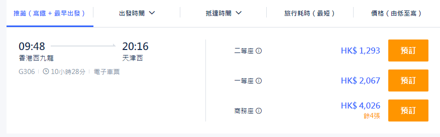 回程線路:回程亦是直達,早上吃個地道的天津早餐後,早上11時多上車,睡個美覺,晚上9點多就回到香港了。