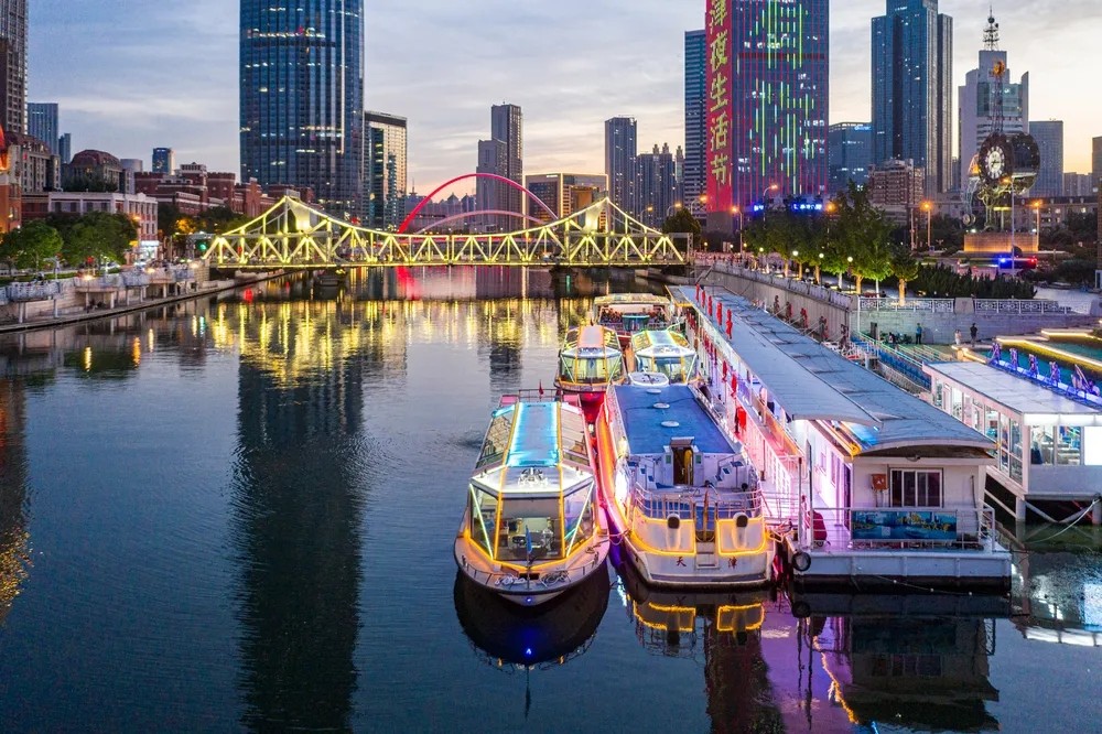 網圖。 通過古鐵炮、古鐘、炮輪、石碑等,了解到當年國人抗擊外敵的奮勇和無奈。同時通過聲、光、電等現代手段,重現大沽口炮台歷經外敵入侵、幾經興廢的悲壯歷史。 【地址】:天津市濱海新區塘沽東砲台路1號 【開放時間】: 09:00-16:30 ➢➢第七站::海河遊船 海河是中國華北地區的最大水系,中國七大河流之一。起自天津金鋼橋,到大沽口入渤海灣,俗稱天津的“母親河”。海河兩岸風景旖旎秀麗,使得乘坐海河遊船欣賞魅力天津成為天津人和去天津的遊客所必不可少的一項旅遊活動。天津海河遊船是以海河為主體,乘船欣賞、觀看海河兩岸旖旎風光和建築歷史文化的天津獨特旅遊項目。