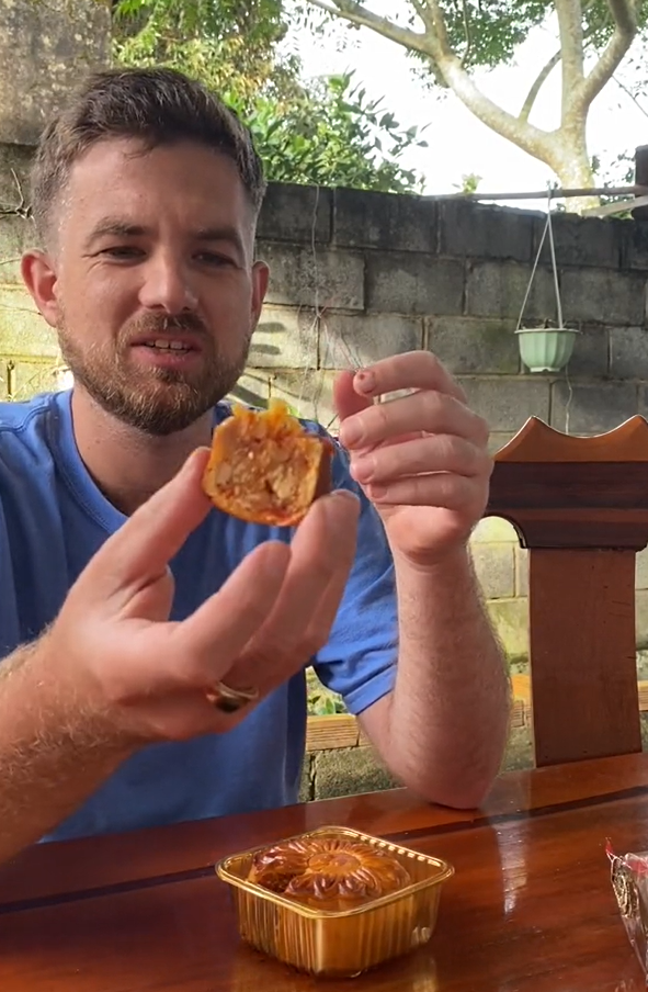 外國網友介紹五仁月餅。圖源:Insgram截圖 作為傳統的中秋限定美食,月餅可甜可鹹,沒人能抵擋得住這款美味的東方美食。在中國毀譽參半的五仁月餅,老外卻愛得不行。 世界各地的網友們,在TikTok上普及月餅“食用教科書”,從月餅有多少種,到月餅到底該怎麼吃,操作熟練得像個Chinese local。