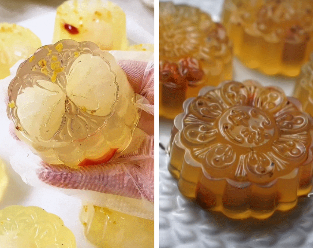 外國網友製作的奧利奧月餅。圖源:TikTok截圖 手巧一點的人,甚至把月餅做成了水晶果凍的模樣,QQ彈彈的看上去十分誘人。