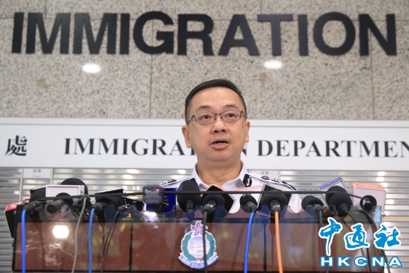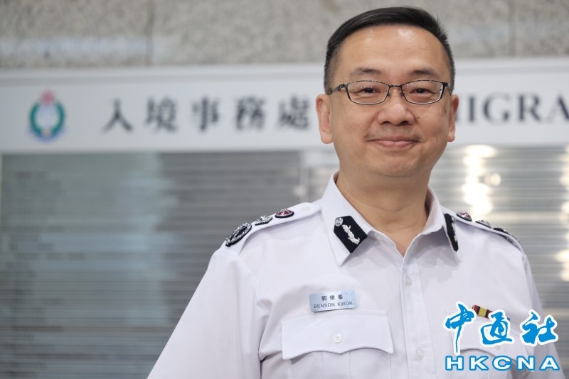 (香港中通社記者 許其皓攝) 郭俊峯預計,接下來十一黃金周及中秋節,出入境人次將迎來高峰期,呼籲市民提早規劃行程,盡量避開人潮高峰期到達口岸。他指,現今周末每日有超過90萬名旅客出入境,預計假期每日有逾100萬人次出入境。 至於“高才通”計劃,郭俊峯表示,截至8月底,已收到4.6萬宗申請,當中3.5萬宗已獲批。入境處亦把握機會,抓緊“搶人才”,應徵入境事務主任的人數達6000多人,較之前多超過4成。(完) 【編輯:刘春】