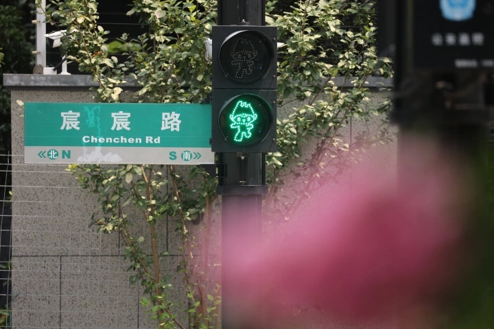 图片来源:杭州2022年第19届亚运会官网 現在,在杭州街頭,走幾步就能看見含有“江南憶”元素的物件,例如雕像、人形立牌、人偶、廣告牌等,它們甚至還化身為交通信號燈出現在杭州亞運村內。