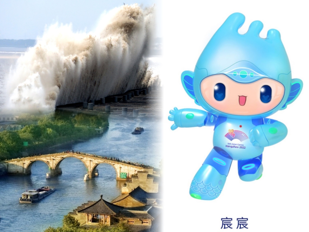 “宸宸”代表世界遺產京杭大運河。它全身以科技藍為主色調,頭頂舉世罕見的錢江潮,額頭嵌以拱宸橋的圖案。“宸宸”展現了海納百川的時代精神,架起了亞洲和世界人民的心靈之橋。