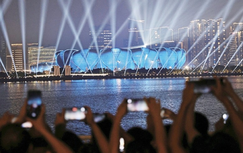 9月18日,杭州奧體中心體育場和杭州奧體中心網球中心舉辦燈光秀活動。 圖自杭州亞組委 看點三:老將怎樣續寫傳奇 新人怎樣橫空出世 作為亞洲最高水平的綜合性賽事,亞運會向來明星雲集。杭州亞運會也是星光璀璨,其中不乏參加過三四屆亞運會的傳奇選手。無論是如鞏立姣、馬龍等仍能摘金奪銀的高手,還是已不在競技巔峰的丘索維金娜等老將,他們都將奮力在杭州續寫傳奇。 有老將延續榮光,也會有新人大放異彩。每屆亞運會都會有新人橫空出世,并由此踏上閃耀世界的征途。本次亞運會上將有大量“00後”選手上演亞運“首秀”。他們將在哪些項目上製造冷門?他們將以何種姿態挑戰名將、超越自我?無論如何,年輕人創造的亞運會“名場面”值得期待。 看點四:文化交流互鑒 文創誰能“出圈” 亞運會不僅是運動健兒爭金奪銀、展示自我的舞台,也是各國各地區文化交流互鑒的平台。亞運會設有武術、藤球、板球、克柔術、卡巴迪等代表不同地域體育文化的特色項目,獨特的賽制和文化將在這場盛會上綻放各自的光彩。 在杭州亞運會上,中國傳統文化和美學也將掀起一股傳播熱潮。杭州擁有三大世界文化遺產:良渚古城遺址、京杭大運河、西湖,以及數不清的文化典故。這些元素與亞運會深度融合,盡顯開放包容的東方審美,也為孵化熱門亞運文創產品提供了豐富的資源。杭州亞運會會有哪些特色文創產品走紅“出圈”,能否產生像“冰墩墩”那樣的現象級符號和產品?