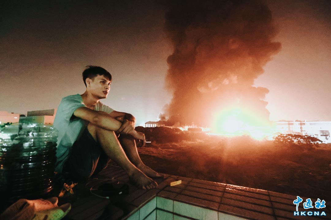 台灣屏東科技園區明揚國際公司大火,造成4死6失蹤102人受傷,9月23日上午,由於現場火勢濃煙不斷,消防人員仍在持續灌救搜索當中。從空拍畫面可見,整座廠房已經面目全非,濃煙仍不斷從裡面冒出,最先前往搶救的屏東消防隊消防車有三輛被埋在瓦礫堆中。香港中通社圖片