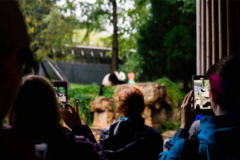 當地時間9月30日,游客在美國華盛頓國家動物園熊貓館觀看大熊貓“小奇跡”進食。圖自法新社 9月30日當天,華盛頓國家動物園熊貓館人山人海,看熊貓的隊伍一直排到館外幾十米。當天的活動包括熊貓圖片展、放映《功夫熊貓》電影、熊貓繪畫以及由中國駐美國大使館協辦的中國文化展示活動,包括體驗中國書法、臉譜、漢服等。 據瞭解,旅美大熊貓“添添”和“美香”於2000年12月從中國來到華盛頓動物園,而“小奇跡”則於2020年8月出生在華盛頓動物園。