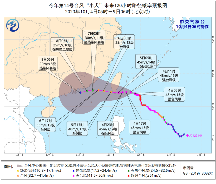 中央氣象台發佈小犬颱風路徑。圖源:中央氣象台 氣象部門預估今日(4日)午後小犬風力將逐漸增強,將影響高雄機場和香港機場。 台灣屏東縣恒春半島今日(4日)下午停班停課,包括恒春、車城、滿州、枋山、牡丹、獅子等6鄉鎮,其他鄉鎮市全日正常上班上課。 阿里山林鐵今天(4日)凌晨宣布本線及支線停駛,另阿里山國家森林遊樂區也宣布今起預警性休園,重新開放時間視颱風動態再公佈。 廣東省防汛防旱防風總指揮部要求,4日晚間6時前,深圳(含)以東海域航行作業漁船全部回港避風,漁排養殖、海上風電施工平台、海洋牧場人員全部上岸避險;10月4日18時前,深圳(含)以東濱海旅游景區全部關閉,確保游客安全。 廣東省氣象專家建議廣東東部民眾5日之後不要前往海邊。廣東省氣象局分析,6日起,受“小犬”外圍環流影響,粵東和珠江三角洲南部市縣多雲轉中雷雨、局部暴雨或大暴雨。 (完) 【編輯:王軼南】