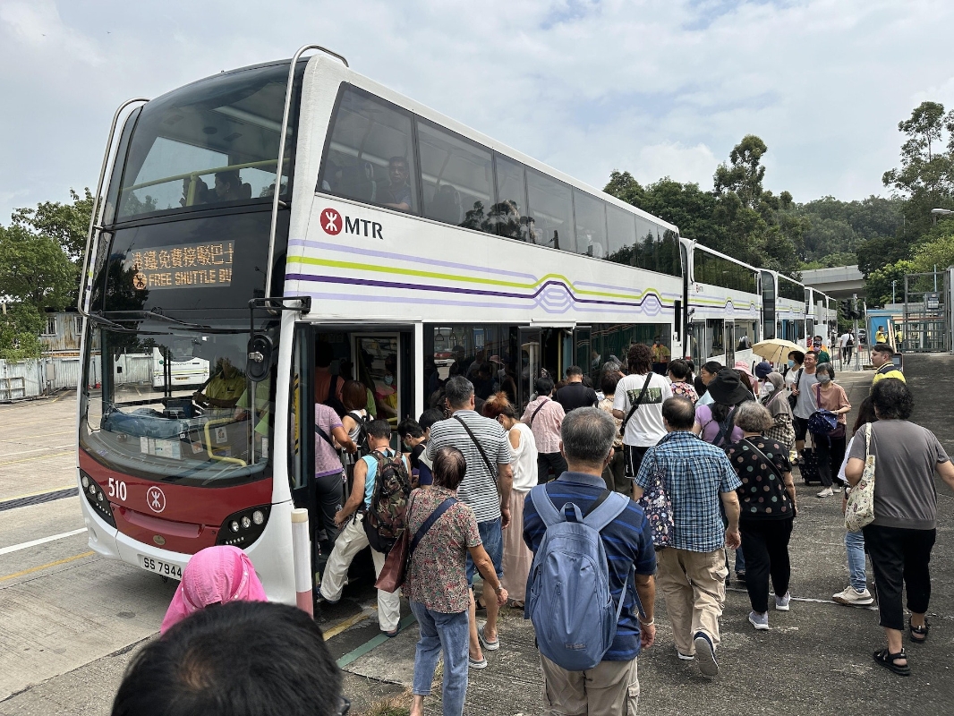 港鐵安排接駁巴士接載受影響乘客。 (黃學潤攝) 現時屯門往元朗方向輕鐵,駛到洪天路緊急月台時,乘客落車可轉乘接駁巴士到元朗總站,沿途會停青山公路各輕鐵站。 (完) 【編輯:王軼南】