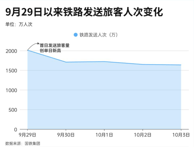 高鐵和飛機為何冰火兩重天 為期8天的中秋國慶雙節假期已過半,根據交通運輸部數據,這個黃金周假期全國跨區域人員流動量將達20.5億人次,日均達2.57億人次。這意味著,大半個中國都在路上,日均人員流動量甚至是今年春運的2倍。假期首日,公路預計發送旅客4002.5萬人次,鐵路發送旅客超2000萬人次。儘管鐵路的客運量只有公路的一半,但鐵路出行增長勢頭極猛,環比增長24.8%,比2022年同期增長108.2%,同比2019年同期更是增長17.3%。 據中國國家鐵路集團有限公司消息,自9月27日至10月8日,為期12天,全國鐵路預計發送旅客1.9億人次,日均發送旅客1583萬人次,同比2019年增長14.7%。 一邊是火,一邊是冰。這個國慶假期,機票價格卻出現大跳水。從10月2日開始,部分長線旅行航段的機票價格出現下降,比如北京飛往蘭州、西安的機票價格降幅為79%;上海飛往成都的機票價格降幅達80%,僅為190元。 有媒體分析表示,機票價格跳水,究其原因除了鐵路出行增長太猛,主要是航司國內航班的運力過剩導致。反過來說明,民航業正在加速恢複。從數據來看,民航客運量已經恢複至疫情前的水平。