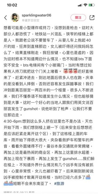 槍擊案親歷者回憶事發經過。小紅書截圖 在中國社交媒體平台小紅書上,大批親歷者回憶事發經過時仍心有餘悸,感嘆“頭一次覺得離死亡這麼近”,“怕了,我要回家了”,“短期內都不敢來東南亞了”。