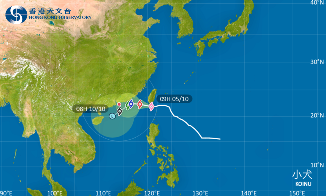 香港新聞網10月5日電 強颱風“小犬”已經進入香港800公里範圍,一號戒備信號現正生效。香港天文台預料,今日(5日)普遍吹強風的機會不大,一號戒備信號會在今日大部分時間維持。