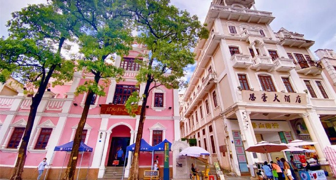 香山商業文化博物館。 傳統意義上的孫文西路步行街,東起悅來路口中山百貨大樓,西至鳳鳴路口,全長約529米,路兩旁商鋪鱗次櫛比,建築將民族傳統建築風格與南洋建築特色融為一體。這些老建築多半建於清朝和民國時期,多是歸國華僑所建。老商業街有當時中山最有名的酒店思豪酒店等,還有一個香山商業文化博物館,裡面介紹了從這個地方走出去的名人和當時中國四大百貨公司,很值得去看。