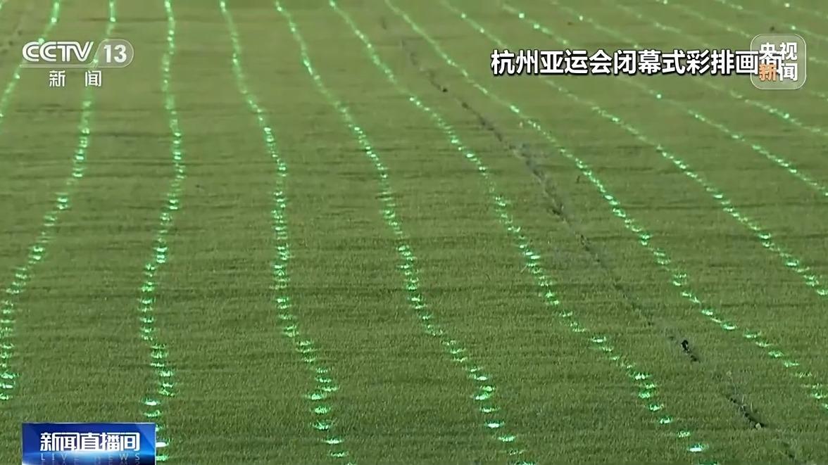 杭州亞運會閉幕式視覺導演 張世騫:我們在草坪裡面藏了4萬多個LED燈珠,進場的時候你不會感覺到它們的存在,但是隨著音樂,隨著節目,隨著情緒表達,視覺呈現,它們會亮起來,然後讓觀眾感覺到從一個正常的比賽的場景幻化出來我們想要的浪潮、荷花和桂花這些圖案。