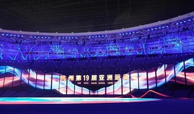 據介紹,本次閉幕式的演出設施在本月5日亞運會田徑比賽結束後才開始布設,如何在有限的時間內搭建一個精彩的舞台,導演組本著簡約的辦會理念決定就地取材,把賽時的草坪變成了一塊“數控草坪”,將近四萬個發光點暗藏其中,配合演出變幻各式圖案。