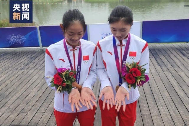 對鄒佳琪來說,比賽中幾秒鐘的差異,就可能讓自己與對手拉開差距。為此,她付出了很多努力。 由於賽艇項目不允許戴手套,平常訓練時,鄒佳琪的雙手長時間與槳摩擦,起泡、流血不可避免,久而久之就形成了老繭。“有時候手上出了繭子,第二天還沒好,就要繼續練。” 這其實是賽艇運動員的“標配”。她的隊友邱秀萍,雙手同樣滿是滄桑。兩人一起為中國隊拿下杭州亞運會首枚金牌。