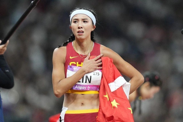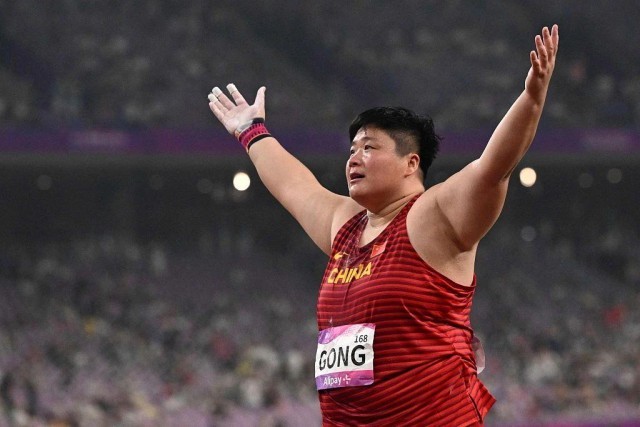 不斷挑戰自己的葉詩文,值得我們欽佩,也期待巴黎奧運會再次看見她的身影。 07 挑戰的終點,或許并不是金牌。 田徑女子鉛球決賽,鞏立姣奪得冠軍,實現亞運會上的三連冠。當她完成最後一投,現場響起了她曾經唱給自己的《勇氣》。