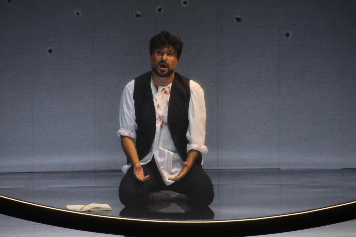 女主角托斯卡來自烏克蘭,她的表演十分搶戲。 場刊介紹女主角迪卡來自烏克蘭,她最擅長表演就是“托斯卡”,無疑這一場的表演是非常成功的。而筆者想起她家鄉的戰火,內心更平添一分悲愴。 《托斯卡》歌劇中另一段非常著名的詠嘆調是《今夜星光燦爛》(E lucevan le stelle)。卡瓦拉多西在監獄當中,得知自己即將被處死。他跟警衛要了紙筆,寫信給托斯卡。這悲傷的詠嘆調,大部分都是在描述夜色與星空之下大自然的靜謐,以及回憶他與托斯卡最溫馨甜蜜的男女之情,最終實在感到自己不想死。他絕望地感慨,用哭腔唱出:“我將絕望的告別(如此美好的)生活,我從未如此珍惜生命!”。