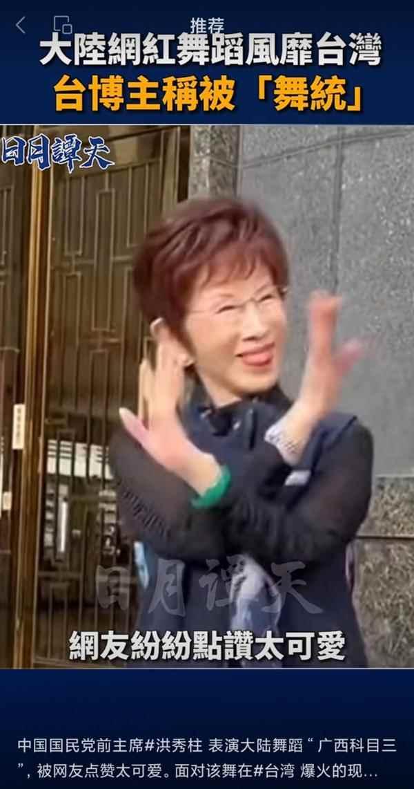 中國國民黨前主席洪秀柱跟著台灣年輕人的示範跳了一段“科目三”。來源:視頻截圖 據了解,"科目三"原本是大陸網友調侃廣西人的一生都要經歷三次“考試”,分別是“科目一”唱山歌,“科目二”嗦米粉,而“科目三”就是這套連招小舞步。 讓人意想不到的是,在大陸社交平台上,絲滑舞步搭配魔性音樂,把“科目三”變成了“土味舞蹈”,也火到了台灣。 就連中國國民黨前主席洪秀柱也被“感染”,跟著台灣年輕人的示範跳了一段,還表示“很簡單,小意思啦!”惹得網友們紛紛點讚。 不僅有“科目三”,曾經紅極一時的大陸老歌《求佛》,在最新的電音版編曲之下,也在台灣刮起了流行風潮,許多本土網紅推出了各自的創意翻拍。有大學舞蹈社團推出了多人群舞版《求佛》,還有知名舞社將閩台八家將文化融入其中,推出具民俗特色的二創版本。有大陸網友表示,兩岸年輕人喜歡的本就相似。台灣網友則笑言,這是跑不掉的趨勢,他的孩子以後長大應該也是聽大陸的歌。 有輿論指出,不論是“科目三”還是“求佛”的火爆,都是兩岸文化交流中出現的新現象,也是兩岸青年獨特的交流方式。越來越多台灣年輕人發現不僅大陸有很多好吃、好玩的,兩岸年輕人都友善、有趣、有夢想。大家彼此是同齡人,更是心靈契合的一家人。 除了大陸抖音神曲在台灣掀起流行旋風,今年以來,許多台灣知名歌手在大陸展開巡回演唱會,票房也十分火爆。 有業者表示,包括周杰倫、蔡依林、五月天、張信哲、伍佰等在內的一眾台灣歌手在大陸的演唱會受到了歌迷重點關注,一票難求已是常態。 兩岸青年加強交流交往,不僅能增進相互了解,深化友誼,也能够為兩岸關係和平發展增添新生力量、注入青春活力。不論是大陸神曲在台灣爆火,還是台灣歌手“登陸”演出獲得歌迷喜愛,都是兩岸民間交流日趨活躍的縮影。過去30餘年,文化交流在兩岸民間互動中扮演著重要角色,兩岸通過音樂穿透了隔閡、增進了彼此間的情感聯繫。如今,透過社交媒體平台的傳播力和影響力,兩岸交流更加順暢,形式更加多元,兩岸青年也建立起更為緊密的生活聯繫與情感聯結。(完) 【編輯:胡雪石】