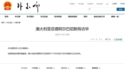 香港中通社10月22日電 澳大利亞總理阿爾巴尼斯22日宣布,將於11月4日訪華。