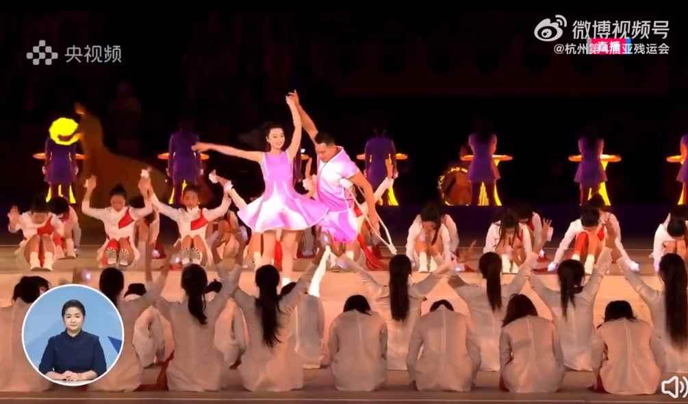 隨著嘹亮的國歌聲響起,五星紅旗冉冉升起。場地中的手語老師,帶著殘疾演員深情地用手語與大家合“唱”國歌,同心共唱愛國深情。 2、文藝表演《勇向前》節目以“金石篆刻”的藝術化表現,詮釋殘疾運動員“精誠所至,金石為開”的拼搏精神。