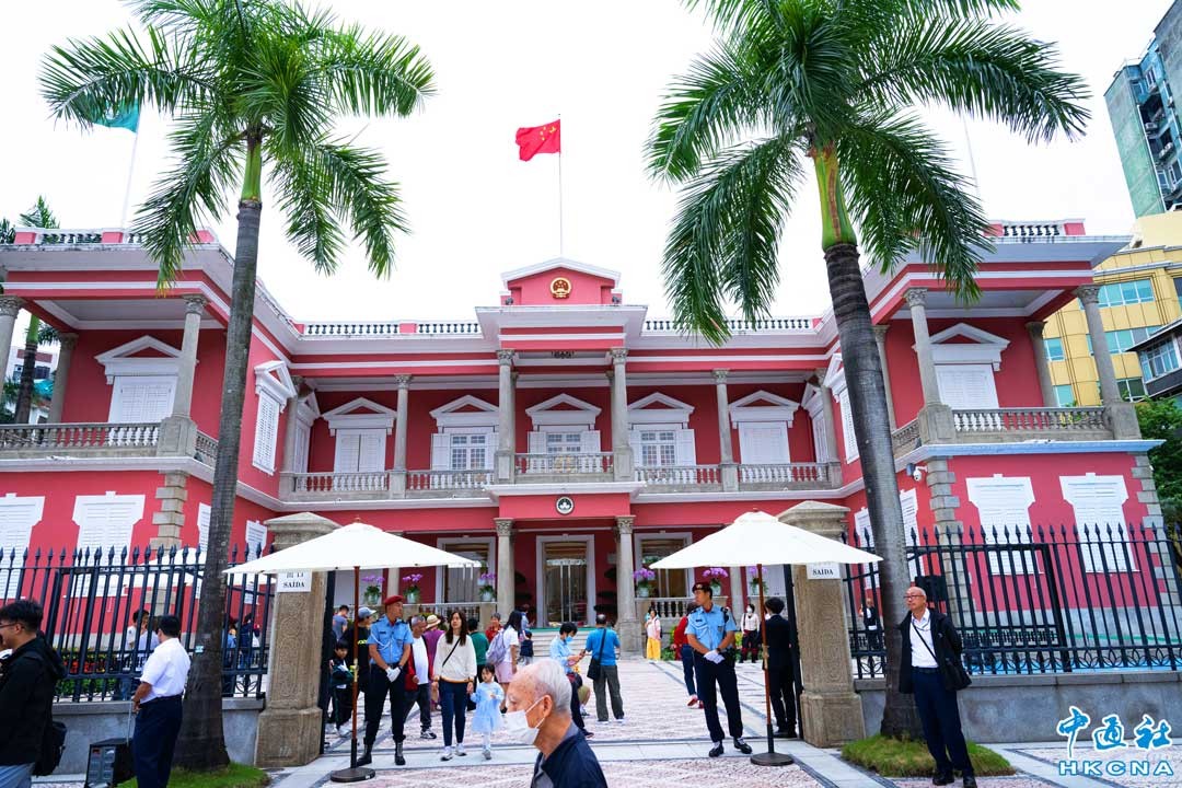 10月21日起,位於南灣大馬路的澳門特區政府總部一連兩日舉行開放日活動,截至傍晚6時,總入場人為7615。 香港中通社圖片