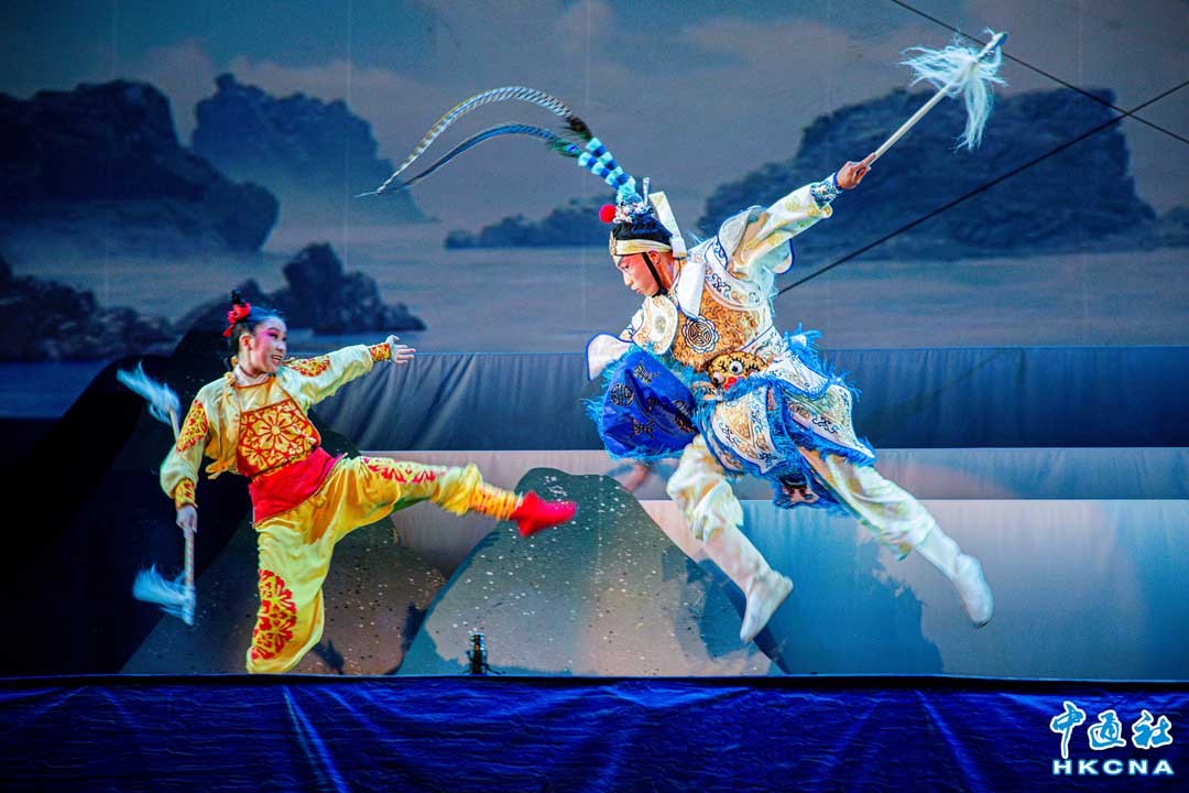 “仲夏表演藝術節”10月20日晚間在台灣嘉義由紙風車劇團演出《哪吒鬧龍宮》,將中國古代文學經典《封神榜》中的故事融入布袋戲、真人演出和動畫技術,呈現精彩視覺效果,吸引近千人入座欣賞。 香港中通社圖片