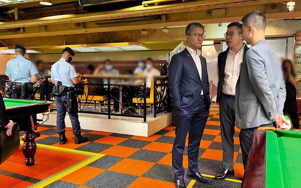 (圖源:香港警察FB) 期間,警務處處長蕭澤頤亦有到場,聽取行動匯報。蕭澤頤到屯門青菱徑一帶的遊戲機中心、酒吧等進行查牌,重申所有保安從業員是警隊的緊密合作夥伴,他們執行職責時若有任何人對其作出違法、暴力行為,警隊絕不容許,會鍥而不捨對相關人士繩之以法。 警方指出,打擊黑社會活動是警務處處長首要行動項目之一,警方會繼續加強情報搜集,以及適時作出重點執法行動以打擊暴力罪案、黑社會相關活動及其收入來源。(完) 【編輯:刘春】