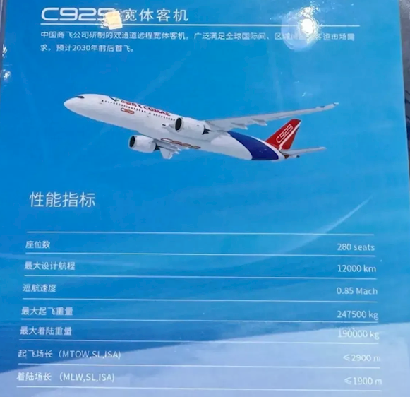 香港新聞網10月30日電 中國商飛總經理周新民最新透露,中國獨自研發的雙通道遠程寬體客機C929日前已經正式立項!在現場展示的模型上,公開了詳細的性能指標,對標波音767。將采用低油耗、低噪聲、低排放的綠色設計理念,降低碳排放,預計將在2030年前後首飛。 據了解,這款最初由中俄聯合研發的雙通道遠程寬體客機的CR929,因俄羅斯受制於自身經濟和科技條件,以及全球環境,俄羅斯最終無奈退出,中國開始單幹,名字也改成了C929。 中國商飛總經理周新民最新透露,C929已經正式立項!現場展示的模型上,飛機型號也變成了C929,同時公開了詳細的性能指標: 座位數280、最大設計航程12000公里、巡航速度0.85馬赫、最大起飛重量247.5噸、最大著陸重量190噸、最大起飛場長2900米、最大著陸場長1900米。
