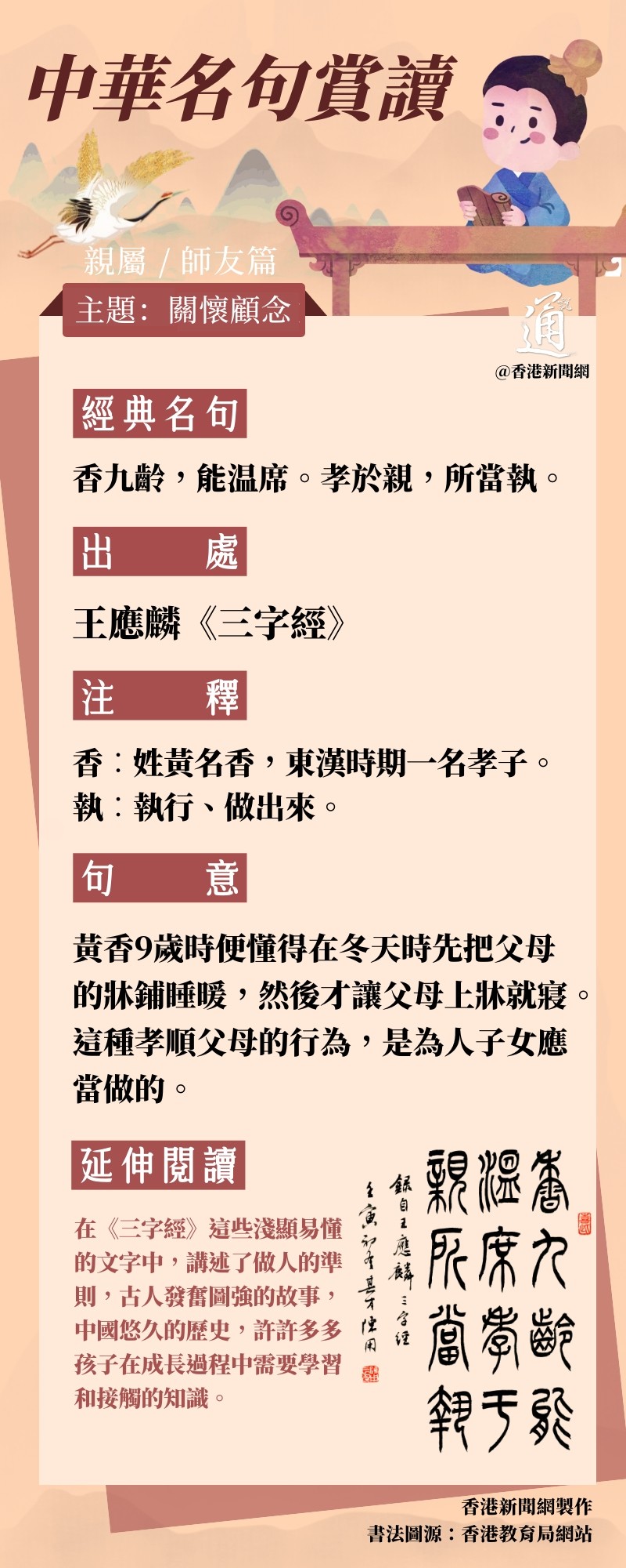 中華名句賞讀|親屬/師友篇•香九齡,能温席。孝於親,所當執
